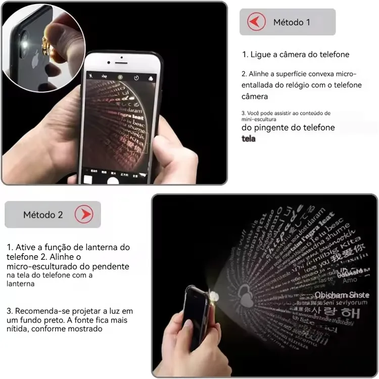 Dentro do pingente estão gravadas "Eu te amo" em línguas de todo o mundo! Aponte um celular📱 ou uma lanterna🌑, e o romance em tela cheia é visível até no céu de Benguela! Seja em português, bantu ou inglês, ele transmite o seu amor para todo o Angola ouvir~ No dia a dia, você é o ícone da moda mais romântico das ruas de Lubango!