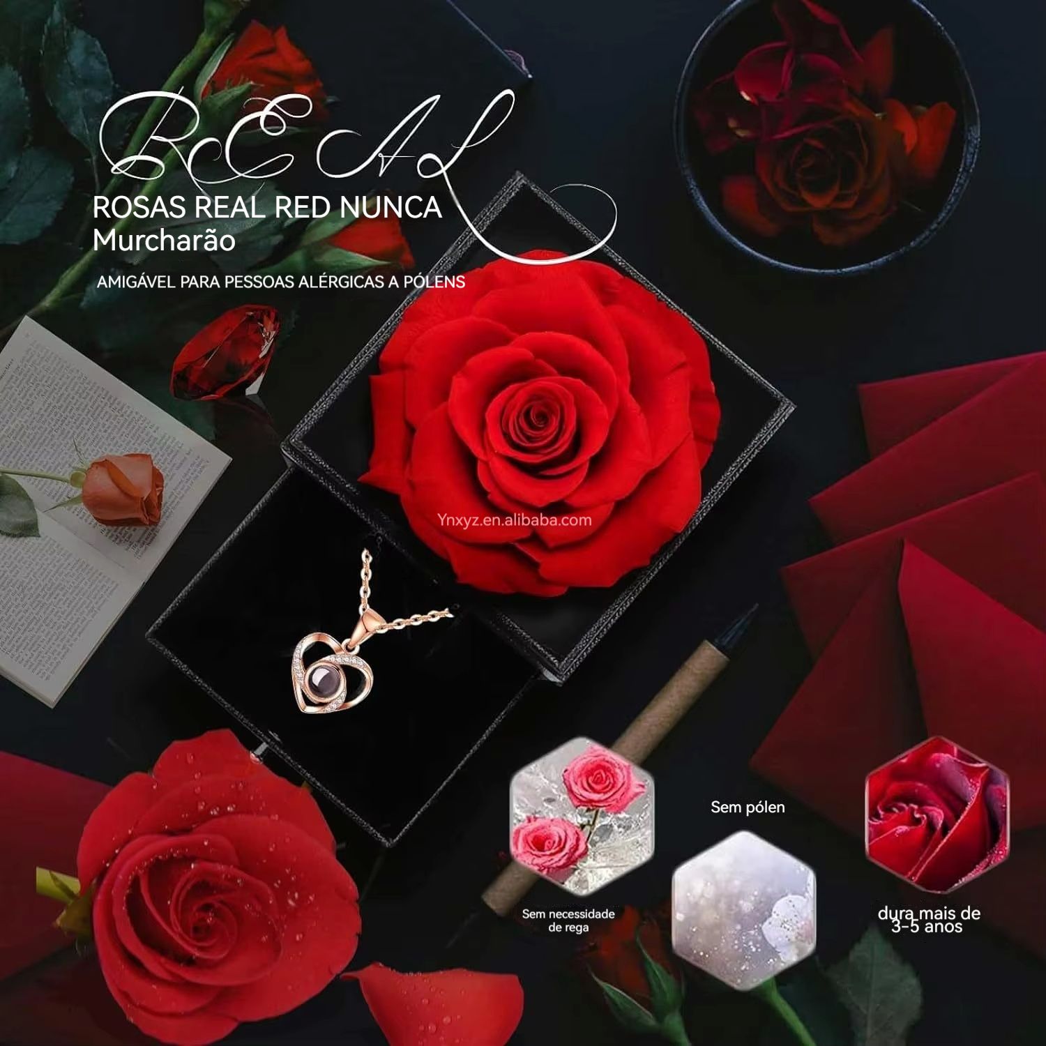 Amigos de Angola, ainda estão indecisos sobre qual presente escolher para datas comemorativas ou momentos de declaração? Escolha esta! Deixe a permanência da rosa preservada e a ternura do colar com microgravação escrever a epopeia do seu amor em cada canto de Angola~🥰